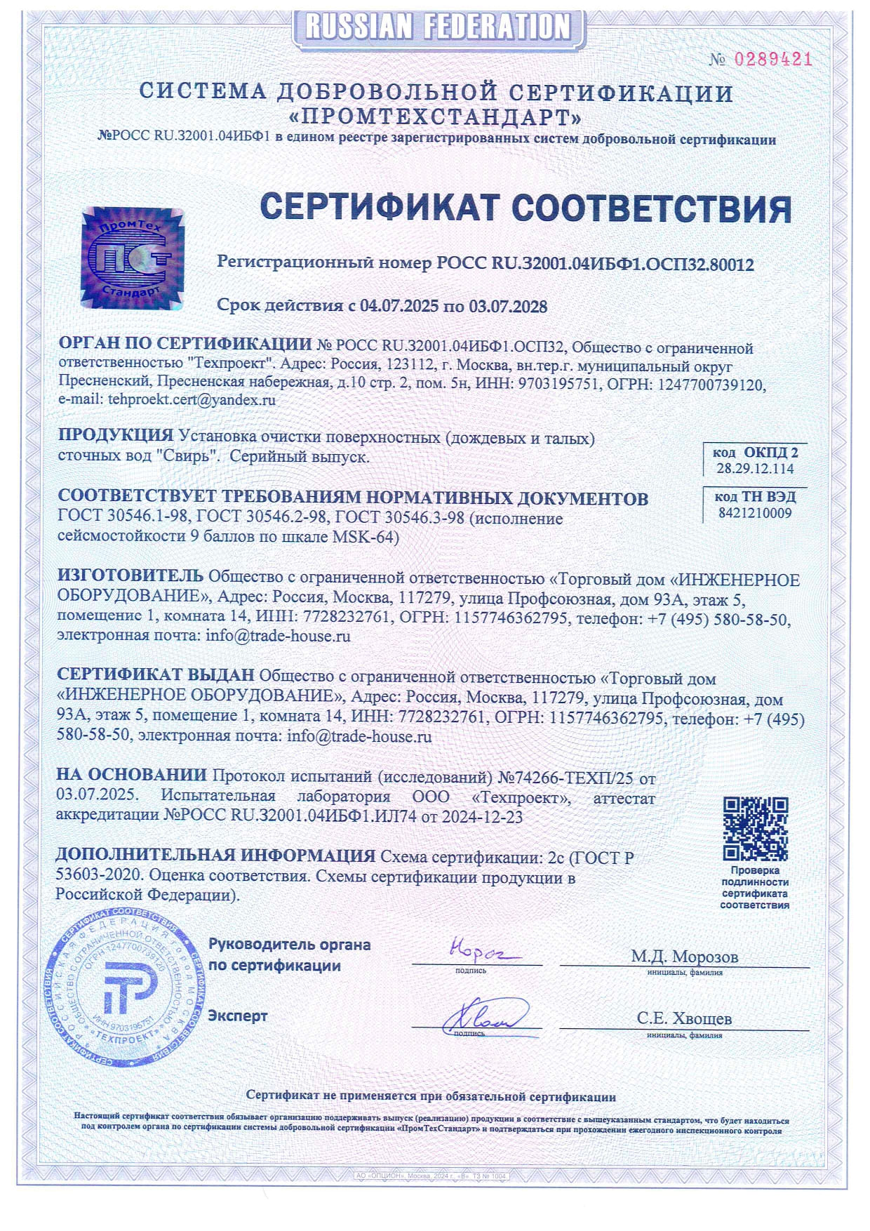 "СВИРЬ" - современная установка очистки стоков талых и ливневых вод. Область применения оборудования – жилой сектор, автозаправки, промышленные объекты и пр. Система выполняет комплексную фильтрацию от разных загрязнений.